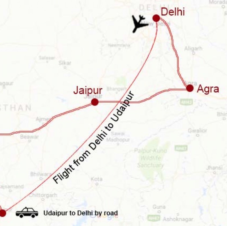 Cities visited include Delhi, Udaipur, Jodhpur, Jaipur and Agra.
