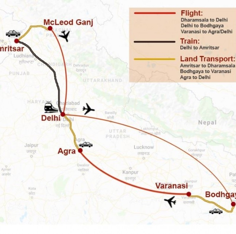 The itinerary has you going to 3 of the holiest places in the world, Amritsar for the Sikhs and Bodhgaya for Buddhists, Varanasi for the Hindus