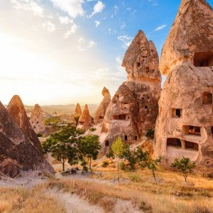 Float high above the lunar landscape of Cappadocia and visit Goreme Valley Open Air Museum and the fairy chimneys of the Underground City
